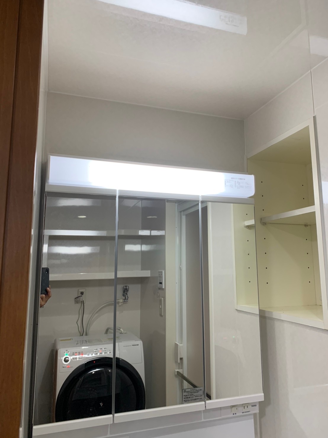 洗面所:TOTOオクターブ 三面鏡 パネル加工